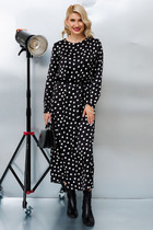 Платье женское длинное с запахом и застежкой на завязку внутри и пояс снаружи. Спинка со средним швом. Перед с тремя легкими складками в области талии. Рукав втачной одношовный с манжетами и двумя мягкими складками. Воротник отложной. Манжеты застегиваются на 2 навесные путли и пуговицы. Фурнитура может отличаться от заявленной на фото.