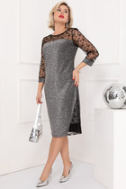 Платье женское прямого кроя.. Вырез горловины круглой формы, на обтачке. В левом боковом шве по низу выполнен разрез. В комплекте пояс из основной ткани на обтяжной пряжке.