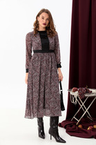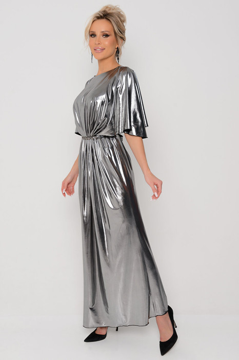 Платье длинное с драпировкой и поясом-завязкой из основной ткани с декоративным элементом (входит в комплект и стоимость изделия).