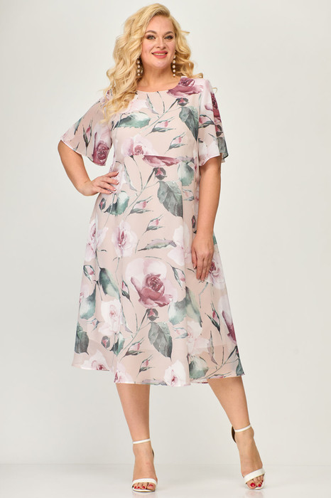 Платье Элль стиль 2218-Р молоко, принт цветы