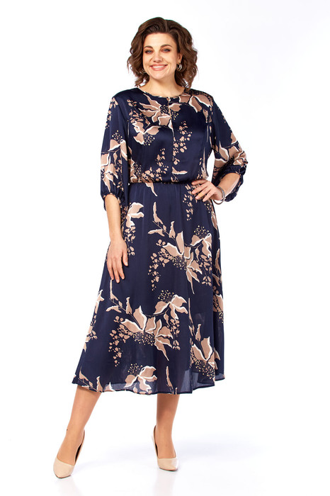 Нежное, изысканное платье, полуприлегающего силуэта расширенное к низу из струящейся ткани. Модель обеспечивает комфорт и свободу движений. Платье отрезное по линии талии, в подрез вставлена резинка, для комфортной посадки изделия. Горловина округлая, подчеркнута эстетичным вырезом по лифу. Рукав втачной, эффектная форма придает легкость стилю. Застежка на навесную петлю-пуговицу. Низ платья на подкладке.