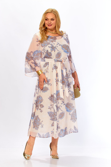 Совместные покупки Тюмень Женская одежда Платья — Платье Элль стиль 2470 бежевый, голубой принт