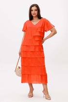 Платье выполнено из трикотажного полотна в рубчик. Платье приталенного силуэта. На спинке средний шов с разрезом. Горловина округлой формы. Плечевой шов заужен.