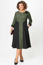 Платье выполнено из плотного атласа. Платье приталенного силуэта, отрезное по линии талии, длиной выше линии колена. Лиф выполнен в виде корсета, в рельефы вставлен регилин. Застежка на потайную молнию сзади в среднем шве спинки и юбки. Юбка прямого силуэта. Платье на притачной по низу подкладке. Брюки из гипюра с фестонами в комплект НЕ ВХОДИТ и продаются отдельно м.2999.