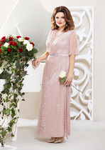 Платье – рубашка, выполнено из сочетания однотекстурных тканей- компаньонов. Горловина- округлая. Рукав втачной, низ рукава обработан декоративной манжетой. По переду расположены прорезные карманы- рамки. Низ- фигурный. длина изделия по центральному шву спинки 124. Длина рукава 42. Длина изделия по боковому шву до выреза (разреза) 75