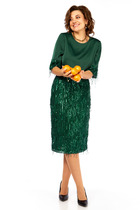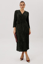 Платье женское повседневное полуприлегаюшего силуэта до талии с расширенной юбкой , выполнено из однотонного хлопка в полоску. Вырез горловины воротник на стойке рубашечного типа,застежка планка на обметанные петли и пуговицы, плечо спущенное , рукав втачной по низу на притачной манжете . В рукаве притачная пата с помощью которой можно менять длину рукава. Юбка из трех воланов на подкладке,в боковых швах обработаны карманы.На левой стороне полочки платья накладной карман с пряжкой . Декором платья служат отделочные пуговицы и накладной карман с пряжкой .
