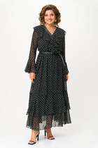 Платье женское стильное нарядное повседневное выполнено из хорошего красивого хлопка в сочетании с шитьем. Вырез горловины отложной воротник, застежка доверху на обметанные петли и пуговицы. Рукав реглан из отделочной ткани (шитье), по центру рукава обработан разрез. Платье отрезное по талии, подрез фигурный по полочке и спинке, придает модели элегантный приталенный вид. Волан по низу платья из отделоной ткани (шитье). Декором служат отделочные пуговицы.