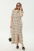 Платье женское легкое красивое стильное нарядное повседневное из шифона с анималистичным принтом на подкладке свободного силуэта расширенное к низу. Вырез горловины V образный на обтачке, по горловине широкий волан переходящий в рукав. Что придает изделию легкость и элегантность. В боковых швах обработаны разрезы. Низ платья фигурный. Декором служит волан и принт самой ткани.