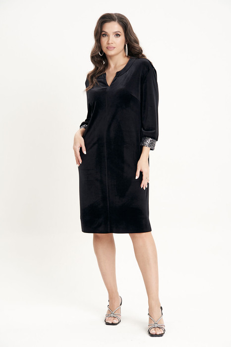 Платье остаётся неизменным символом женственности и элегантности, являясь ключевым элементом гардероба. Акцент - на многофункциональность! Это и самостоятельный наряд, и в дополнении с другими элементами одежды (жакеты) - гармоничный образ от вечернего выхода до повседневного. Свободный упрямлённый силуэт, втачной рукав, круглая горловина с акцентным треугольным вырезом. Спинка с центральным швом. Рукав 3/4 с акцентной деталью из пайеток.