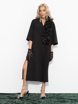 Женственное платье втачного покроя выполнено из мерцающей сетки, красиво играющей при движении. Драпированные рукава и стоячий воротник добавляют утончённости, а подкладка-чехол обеспечивает комфорт и идеальную посадку. Образ одновременно выдержанный, современный и эффектный.