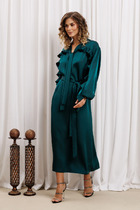 Полуприлегающий силуэт, втачной покрой, рукав длиной 7/8, отрезной лиф с запахом, юбка с запахом по переднему полотнищу. По линии талии по переду акцентная драпирующаяся деталь-перевертыш. По линии талии на спинке-эластичная тесьма.