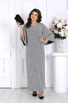 Женское платье полуприлегающего силуэта выполнено из плотного сатина с подрезами и складками, расположенными под линией груди. Рукава цельнокроеные; горловина имеет v -образную форму; в боковом шве - молния.
