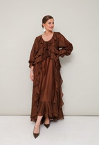 Рукава гладкие, одношовные. Горловина платья круглая.