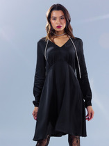 Нарядное платье из трикотажного крепа с мелким блеском станет прекрасным выбором для вечерних мероприятий,корпоративных встреч и праздничных торжеств.Особенностью этого стильного платья является его прямая модель ,которая подчеркивает женстсвенность и элегантность.Платье подходит для полных женщин. Платье прямого силуэта с нагрудными вытачками.Рукав спущенный с декоративной шлицей и пуговицами. Декором платья являются клапаны и пуговицы.Пояс эффектно подчеркивает талию.