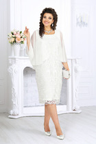 Платье приталенного силуэта отрезное по линии талии из мягкой замшевой ткани. Перед со средним швом и нагрудной вытачкой. Спинка с талиевыми вытачками, средним швом и потайной молнией. Рукав втачной слегка расширенный книзу. По низу  изделия ассиметричный волан. Средний шов и шов вдоль талии отстрочен отделочной нитью. Длина платья по среднему шву сзади 103 см, по самым длинным концам - 115 см, длина рукава 62 см.