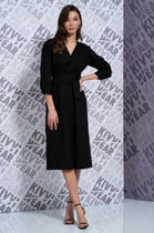 Женское платье свободного силуэта, отрезное по линии талии. Верх платья выполнен из легкого непросвечивающегося шифона с дизайнерским принтом на трикотажной подкладке, рукава цельнокроенные "летучая мышь", вырез горловины округлой формы, по линии талии и низу рукавов декоративный пояс и манжет из шёлк-сатина. Низ платья выполнен из плательной ткани средней плотности без подкладки.