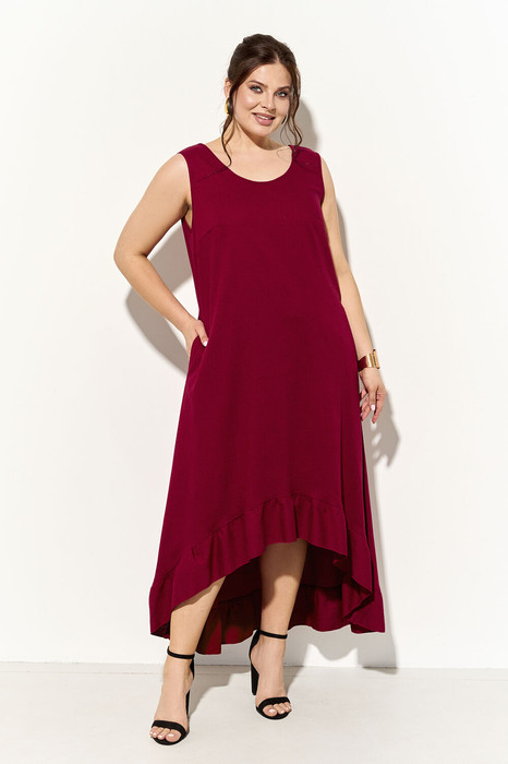 Женское платье А-силуэта выполнено из натурального льняного полотна с карманами в боковых швах; линия низа ассиметричной формы с присборенным воланом. Платье полностью соответсвтует заявленному размеру. Пользуйтесь таблицей замеров готового изделия.