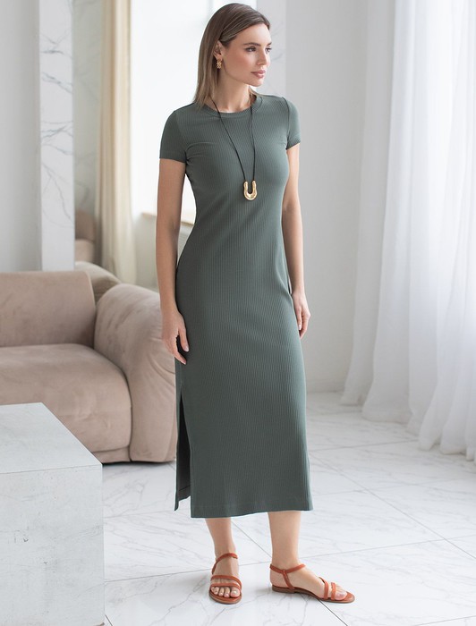 Состав: 95%Хлопок 5%ПУ Плотность: 200 Г/м2Платье выполнено из трикотажа в широкий рубчик. Модель дополнена высокими разрезами по бокам. Премиальное качество хлопковых волокон и наличие эластана в составе изделия способствуют идеальной посадке по фигуре не сковывая движений. Изделие сохранит свой безупречный внешний вид в течении долгого времени.