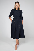 "Платье женское прямого силуэта, изготовлено из натуральной ткани. Горловина круглой формы. По переду обработаны нагрудные вытачки. На спинке средний шов. В боковых швах обработаны карманы, внизу разрезы. Рукава втачные, разрезные с фигурным вырезом. Платье декорировано дизайнерской вышивкой.