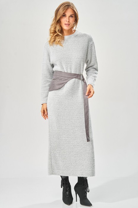 Уютное стильное повседневное платье длиной "в пол" с оригинальным поясом для осенне-зимнего сезона.