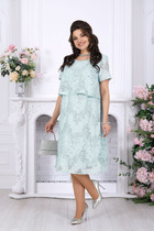 Длина платья до середины икр, отрезное на уровне линии талии, к низу расширенное. Вырез горловины платья «V-образной» формы, обработан обтачкой. Лиф детали переда со средним швом. Юбка платья на тонкой трикотажной подкладке. В шов соединения лифа и юбки вставлена эластичная тесьма. Рукава цельнокроеные, с ластовицей, и с притачной планкой, собраны на эластичную тесьму.