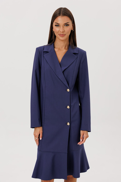 Элегантное платье-жакет с двубортной застежкой и лаконичным воланом.