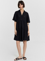 Платье длины миди со свободной юбкой и пришивным по переду поясом. Рукав цельнокроеный. По спинке встречные складки и застёжка по линии горловины на пуговицу.