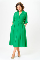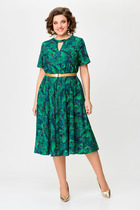 Платье свободного кроя, А силуэта. Рукав втачной на манжете. В Y-образный вырез горловины вшиты воланы. По горловине застежка на завязку.