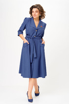 Стильное шифоновое платье A-образного силуэта на трикотажной подкладке. Рукав втачной, снизу присборен на эластичную тесьму. Горловина круглой формы, обработана тесьмой из основной ткани, завязывающейся на бантик. Длина платья от плечевого шва 93см. Длина рукава 49см.