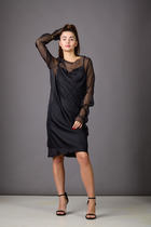 Стильное платье приталенного силуэта. Выполнено из хлопковой ткани. Рукав цельнокроеный, короткий. Горловина обработана отложным воротником.  Центральная застежка выполнена с асимметрией, что придает платью уникальность.  Низ платья расширен к низу. На талии оригинальная драпировка. Длина платья от плечевого шва 122см.  Длина рукава 15см.