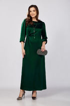 Платье прямого силуэта с карманами в боковых швах. Перед со средним швом, заканчивается разрезом. Горловина по переду и спинке присборена и обработана декоративной бейкой из основной ткани. Рукав реглан со сборкой у горловины, расширенный книзу на резинке. По рукаву и низу платья декоративные складки. В комплекте пояс из основной ткани.