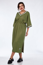 Струящееся платье с расклешенной к низу юбкой, выполнено из облегченной ткани очень приятной к телу, в боковых швах карманы. Рукав цельнокроеный приспущенный на отложенной манжете. Настрочные клапаны по лифу платья имитируют вход в карман и украшают, но абсолютно не утяжеляют изделие. По поясу вставлена резинка, фиксирующая высоту талии и подчеркивающая ее. Ремешок идет в комплекте. Длина по спинке 109+-1см.