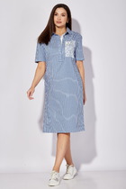 Платье рубашечного типа, свободного кроя - выполнено из приятной на ощупь хлопковой ткани. Универсальность кроя и натуральная легкая ткань сделают его любимым изделием Вашего гардероба в летний сезон. По переду сверху застегивается на пуговицы, снизу сбоку разрез, по спинке длиннее. Рукав короткий цельнокроеный приспущенный на отложенной манжете. Благодаря встречной складке на спинке имеет небольшое клешение. Украшением платья служит декоративный принт. По желанию фиксируется поясом из контрастной ткани, который идет в комплекте. Длина изделия по спинке от горловины 130 (+/-1) см. Изделие подойдет на рост 170 см.