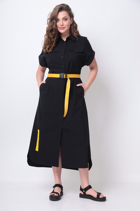 Платье рубашечного типа, свободного кроя - выполнено из приятной на ощупь хлопковой ткани. Универсальность кроя и натуральная легкая ткань сделают его любимым изделием Вашего гардероба в летний сезон. По переду сверху застегивается на пуговицы, снизу сбоку разрез, по спинке длиннее. Рукав короткий цельнокроеный приспущенный на отложенной манжете. Благодаря встречной складке на спинке имеет небольшое клешение. Украшением платья служит декоративный принт. По желанию фиксируется поясом из контрастной ткани, который идет в комплекте. Длина изделия по спинке от горловины 130 (+/-1) см. Изделие подойдет на рост 170 см.