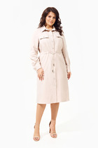 Платье выполнено из вискозного полотна, максимально комфортного и легкого. По переду v-образный вырез горловины  и накладной карман с декоративным нашивным элементом. Рукав одношовный, линия плеча слегка спущенная. Спинка разрезная по среднему шву, шов декорирован нашивным элементом. В комплект входит пояс. Длина платья 111 см. Длина рукава от горловины 34.