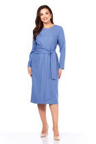 Платье полуприлегающего силуэта, отрезное по линии талии, застежка центральная (обработана притачной планкой) на петли-пуговицы. Лиф переда с фигурными рельефами. По линии талии в нижней части расположены складки. Лиф спинки с талиевыми вытачками, рукав одношовный втачной, слегка расклешенный. По нижней части спинки, рукава и по кокетке переда вставлена декоративная ткань с отделочной тесьмой. Воротник рубашечного типа с отрезной стойкой. По краю воротника и краю карманов настрочена декоративная тесьма. Платье на подкладке. Дополнением служит пояс.