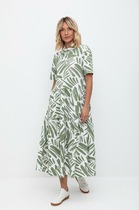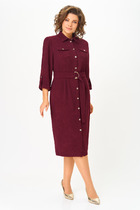Платье женское, полуприлегающего силуэта. Перед с нагрудными вытачками и ццентральным швом. Спинка с талиевыми вытачками и отрезнгой кокеткой. Застежка на воздушную петлю и пуговицу. Низ фигурный. По боковым швам, горловине и среднему шву переда вставки с контрастным кантом.