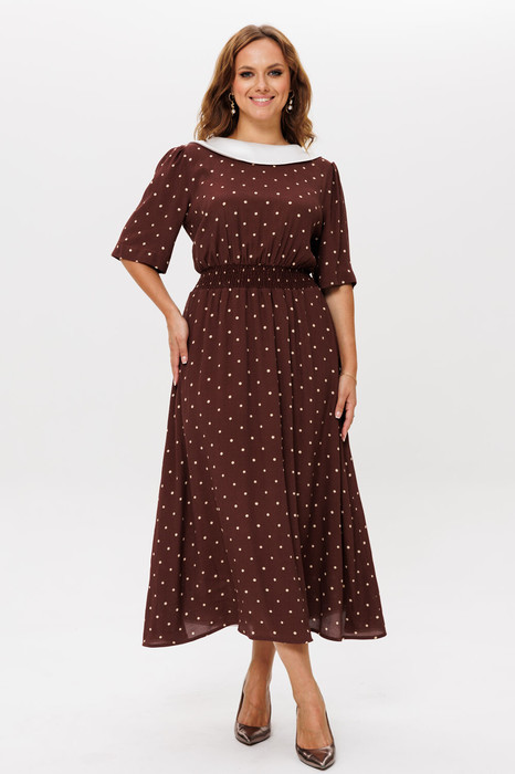 Платье MisLana 1206 рыжий(корица)/горошек
