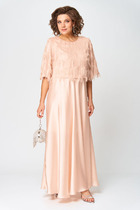 Платье женское приталенного силуэта, отрезное по линии талии. По лифу переда и спинки расположены рельефы. Юбка расклешенная с разрезом по переду. Застежка на потайную тесьму-молнию в среднем шве. Дополнительной застежкой служит шнуровка корсетного типа по спинке. Рукава съемные, держатся на резинке.