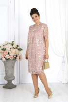 Платье свободного силуэта с подрезом ниже линии бедер. Перед с кокеткой. Горловина обработана рюшей и завязками. Рукав одношовный, заканчивающийся манжетой на венгерке. По окату рукава сборка. Платье на подкладке. Дополняет модель пояс.