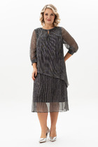 Платье женское полуприлегающего силуэта выполнено из трикотажного полотна. По переду нагрудные и талевые вытачки. Спинка с вытачками и застёжкой потайной молнией в центральном шве спинки, который заканчивается шлицей с разрезом. Горловина круглая. Рукава двух шовные втачные. Платье без подкладки.