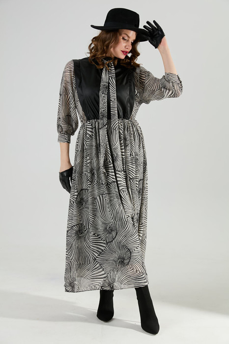 Совместные покупки Тюмень Женская одежда Платья — Платье NIKVA н1010-1а чёрный и чёрно-белые ракушки
