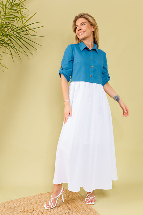 Совместные покупки Тюмень Женская одежда Платья — Платье NIKVA н365-5 аквамарин+молоко