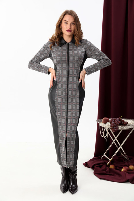 Совместные покупки Тюмень Женская одежда Платья — Платье NIKVA н426-3 серая клетка+чёрный