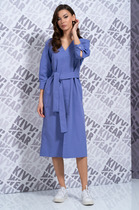 Элегантное платье приталенного силуэта, слегка расширенное к низу. Отрезное по линии талии. На деталях переда и спинки отрезные кокетки. На детали переда средний шов. По верхнему краю и на участке талиевого шва деталей переда и спинки выполнена сборка. Вырез горловины V-образной формы. На детали нижней части переда и спинки талиевые вытачки. Рукав длинный, втачной. Застежка платья на потайную молнию в боковом шве.