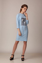 Женственное платье из замшевой ткани длиной миди свободного прямого кроя с горловиной, обработанной обтачкой. Рукава втачные длиной три четверти. Застежка центральная на петли и пуговицы. Накладные карманы. По боковым швам - разрезы. Изделие без подкладки.