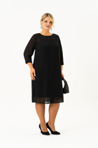 Платье макси комбинированное, двухцветное. Лиф фигурный по низу, выполнен из костюмной ткани. Вырез горловины полукруглый, по спинке затежка на молнию. Рукава втачные. Юбка на резинке, драпирующаяся, расширенного силуэта из шифона. На подкладке.