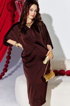 Платье макси прямого силуэта с V-образным вырезом, отрезное по линии талии. Горловине с имитацией чокера, застёжка на петлю и декоративную пуговицу. Рукав немного приспущен, по низу собран на манжет с петлей и пуговицей. Изделие на подкладке. Фурнитура может отличаться от заявленной на фото.