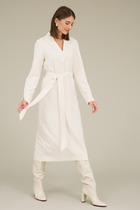 НМ Tie-detail puff-sleeved dress Cream