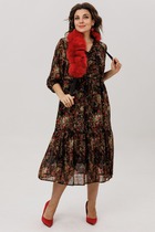 Полуприлегающий силуэт аккуратно подчеркивает фигуру, не сковывая движений, а продуманные вытачки по переду и спинке создают красивую посадку, особенно для женщин с формами. Вертикальный фигурный подрез по центру визуально вытягивает силуэт и делает образ стройнее. Контрастная планка с декоративными пуговицами добавляет изящный акцент и эффектно имитирует застежку, придавая платью стильный и ухоженный вид.